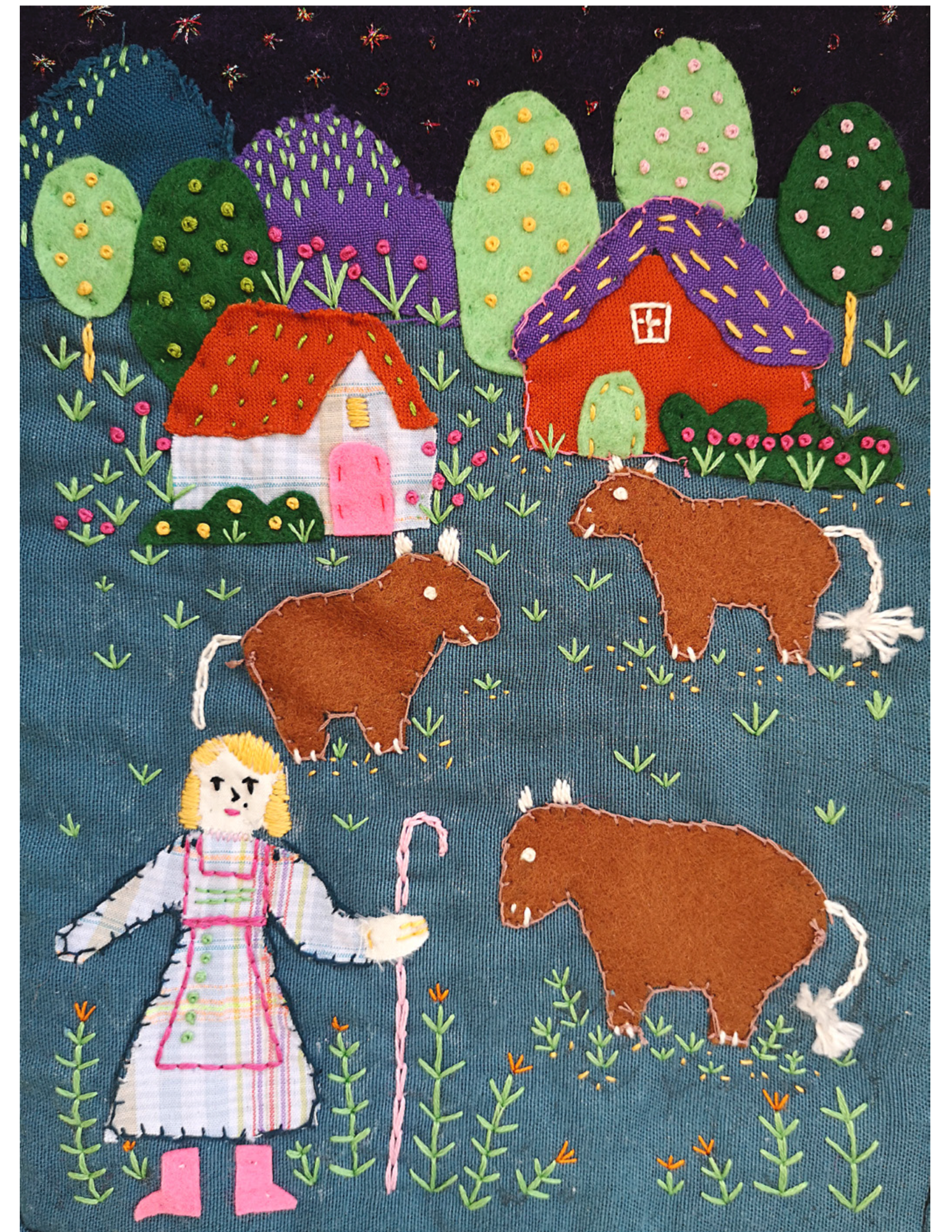 Despois de coñecer a historia desta técnica, inspirarémonos nas arpilleras populares para realizar o noso propio deseño. Empezaremos creando a ilustración que posteriormente será trasladado á tea. A partir dese momento escolleremos os apliques a utilizar, para rematar bordando pequenos detalles. No proceso, aprenderemos diferentes tipos de puntadas e técnicas para crear a nosa arpillera.